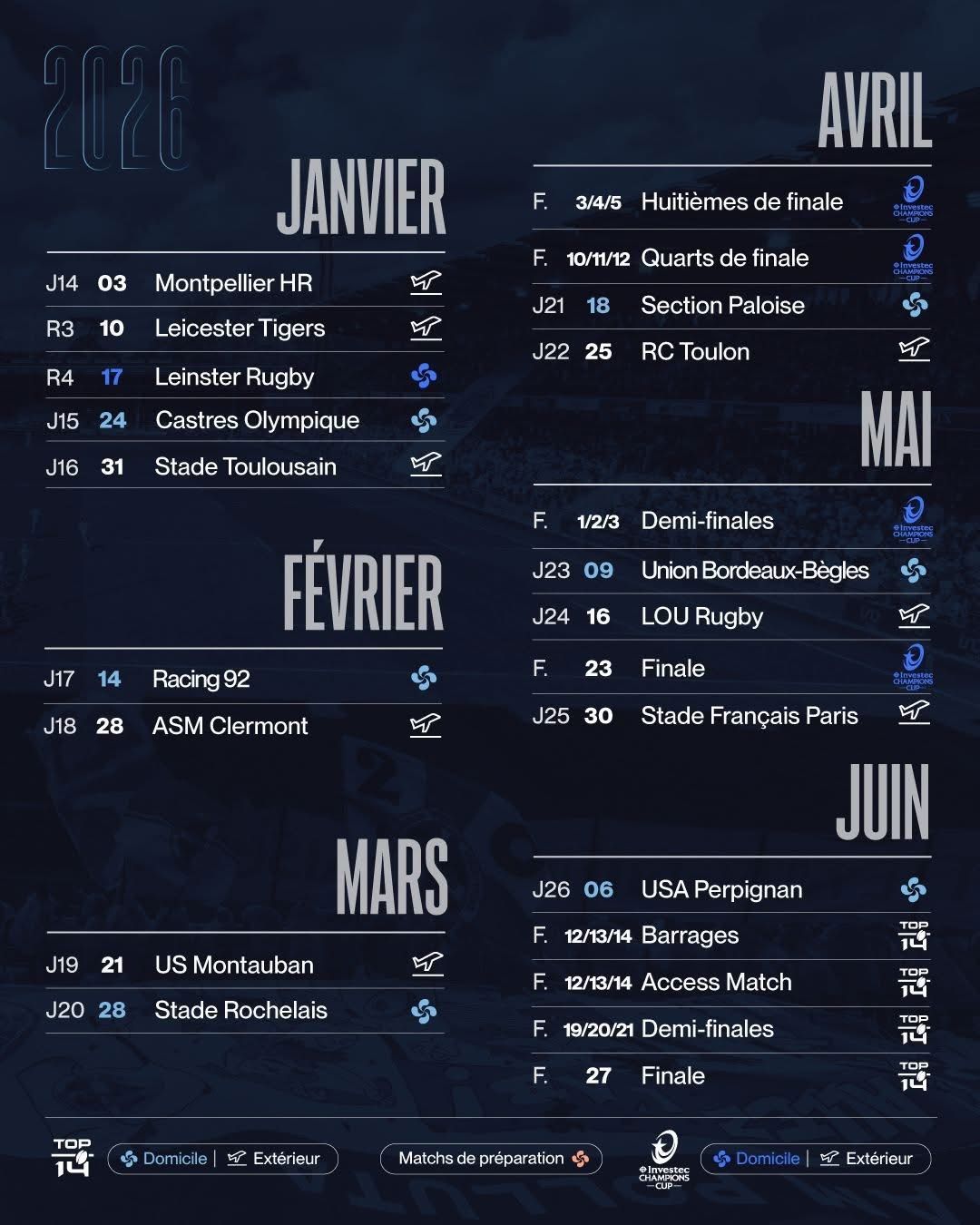 Miradour vous propose le pack TOP 14 qui inclut la chambre d'hôtes avec le petit-déjeuner et deux billets pour des places attribuées en tribune Europcar Bloc B haut :